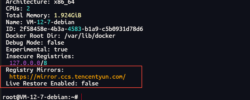 docker info出现这个表示配置成功,其他华为云、阿里云都类似,只不过加速地址不同,可以在其官网找到。