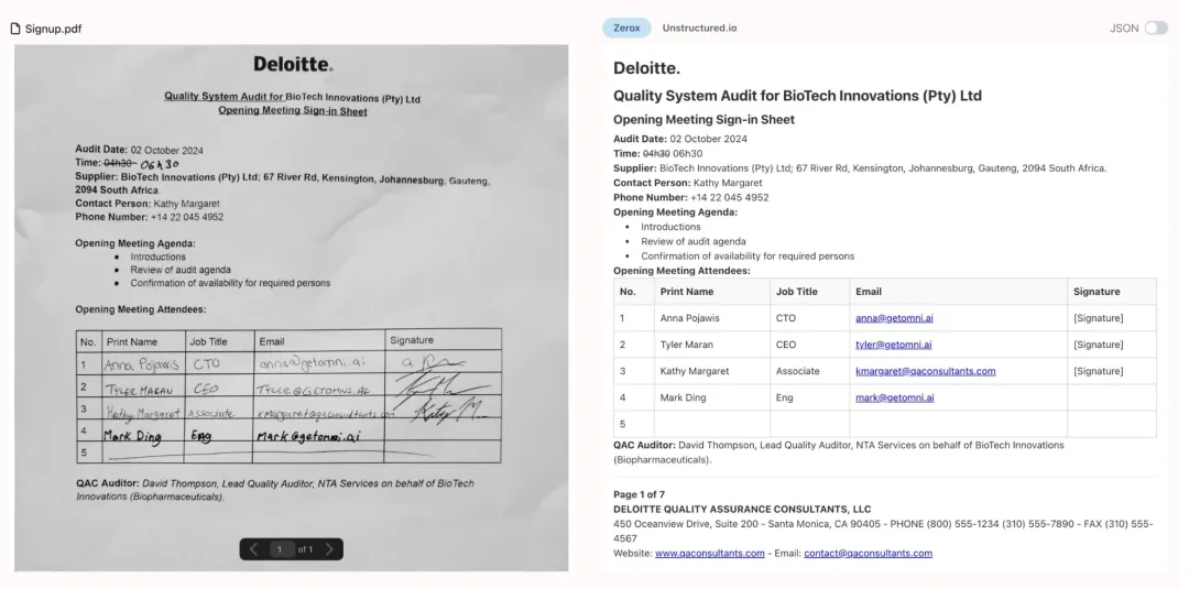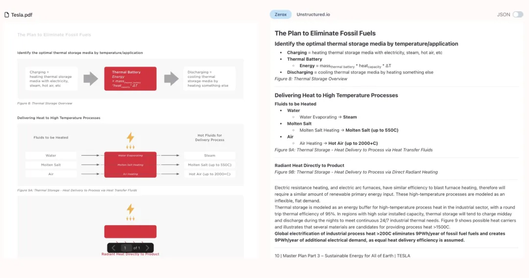 Zerox的工作原理简单高效。用户上传文件后,系统将文件拆分为一系列图像,并利用GPT模型对每页图像进行识别处理,最终生成结构清晰的Markdown文档。对于图像内的复杂排版、表格内容,Zerox的视觉模型也能很好地应对。